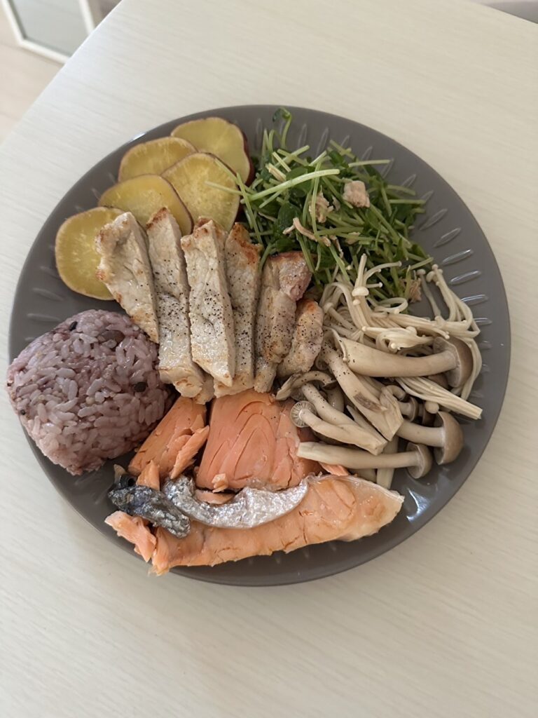 タンパク質と、脂肪になりにくい炭水化物を摂っていただいております。