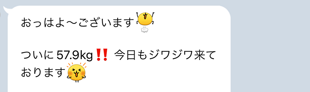 66.8キロからダイエットが順調に進み、57.9キロまで達成しているお客様