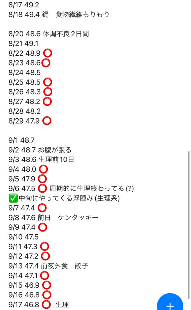 また、生理の周期で体重が少し落ちにくくなっている日もありますが、